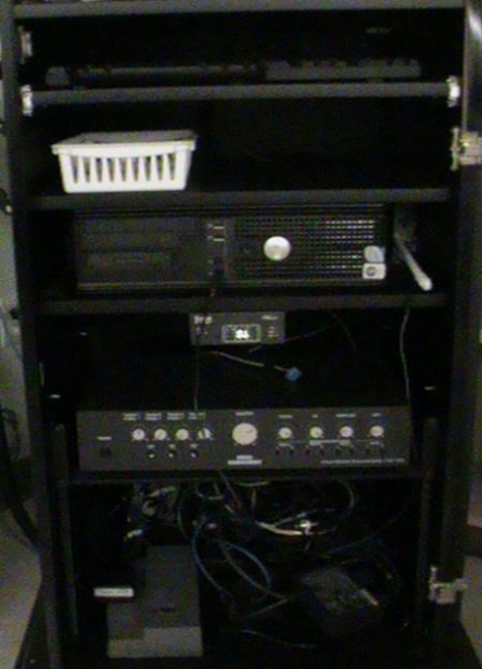 Sound: The volume control knob is located on the tuner. Data projector: To turn data projector off, select the OFF button located on the remote control.