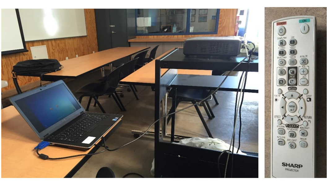 2: Turn on the computer. Laptop 1: Turn on the data projector.